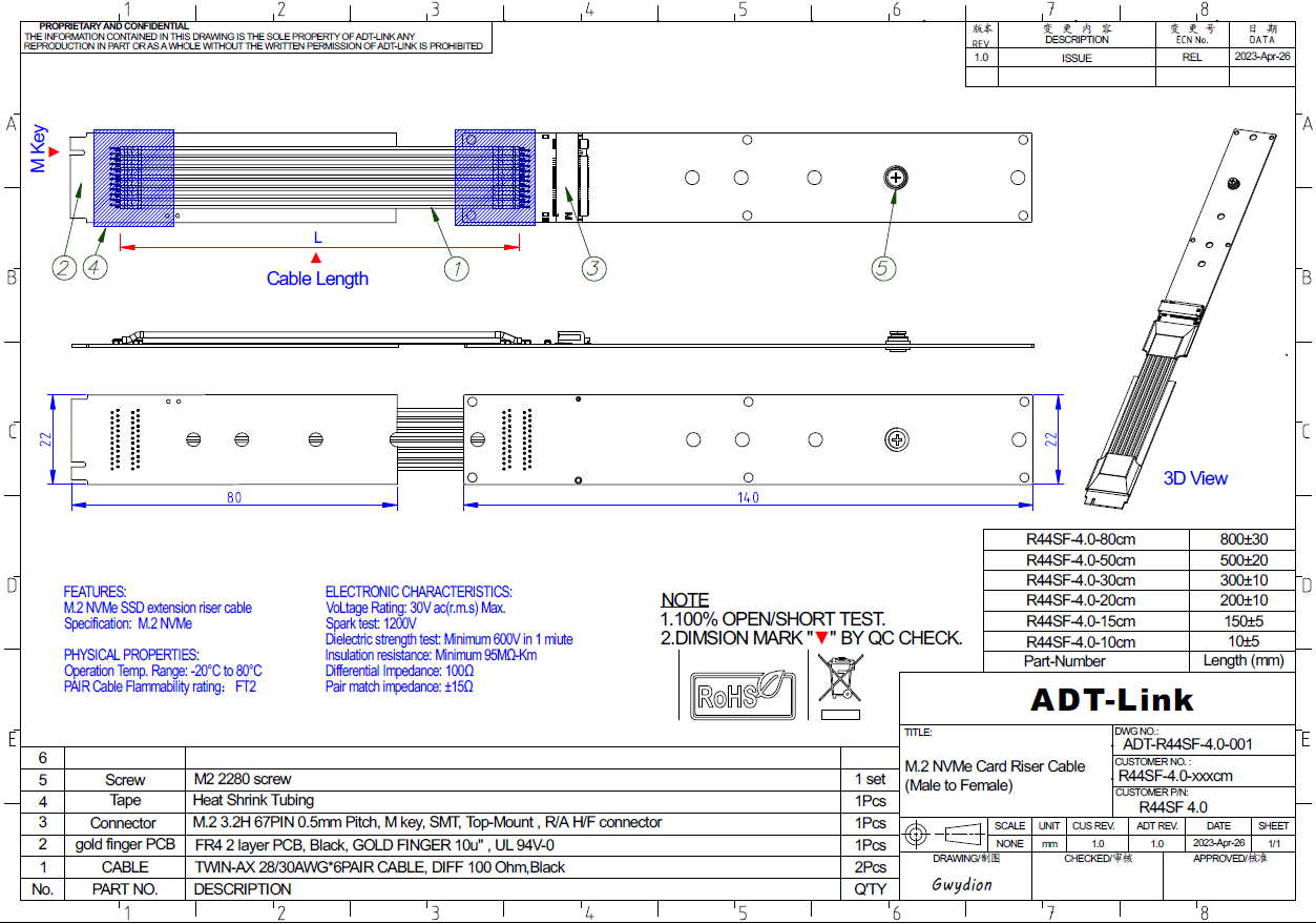Nota: El modelo R44SF 4,0 admite PCIe4.0, pero la señal se atenuará siempre que el cable de extensión esté conectado. Este producto no garantiza la velocidad completa de PCIE4.0, el envejecimiento del equipo, la señal deficiente o el entorno deficiente, reduzca la velocidad de uso.
