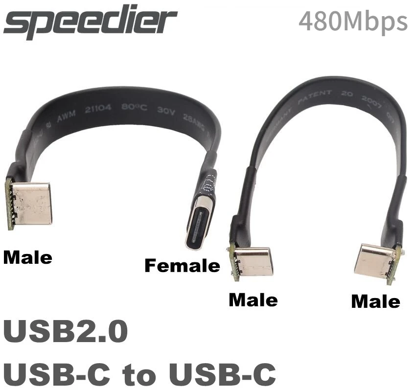 Cable de cinta plana USB 2,0 tipo C a C, macho/hembra, USB-C, Cable de carga de datos, ángulo de 90 grados, adaptador USB2.0 para PC, TV, extensión USB