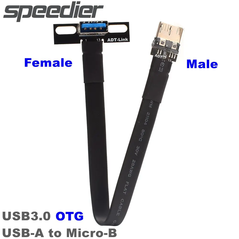 Comprar Cable de cinta plana USB 3,0 tipo A micro-b EMI Shield FPC FPV USB3.0, conector micro-usb de ángulo de 90 grados, OTG ID, extensor