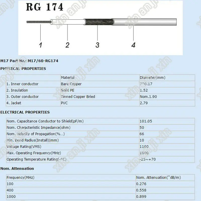 Cable Coaxial RF RG174 de 10 metros, 2,8mm, 50 Ohm, baja pérdida, 30 pies para conector de engarzado, envío rápido