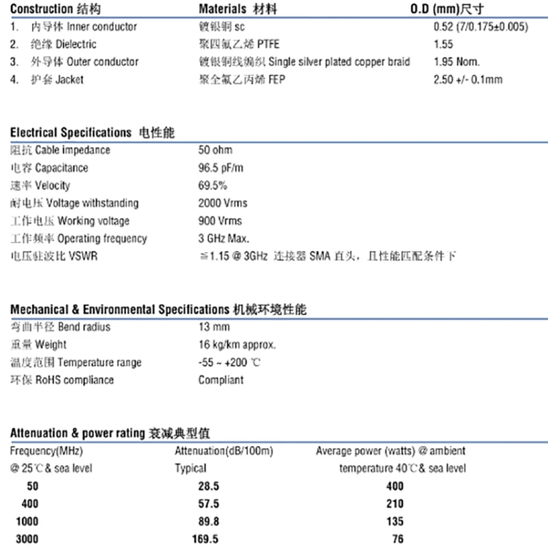 Comprar Cable Coaxial RG316 PTFE de alta temperatura, M17/113 Rf, 50ohm, coleta