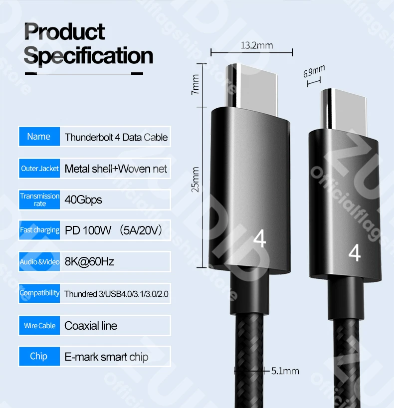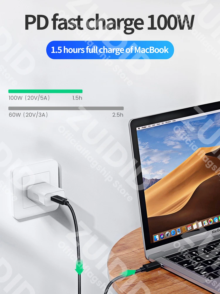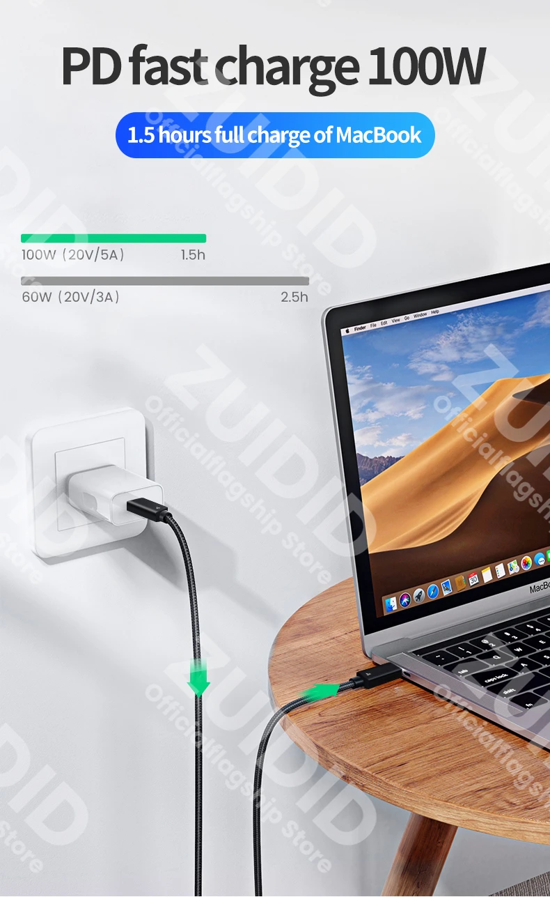 【Salida de alta potencia】El cable ThunderBolt 4 de 100W compatible con los protocolos de carga rápida QC4.0/PD3.0/2,0, este cable de carga rápida USB C puede satisfacer completamente las necesidades de carga rápida.