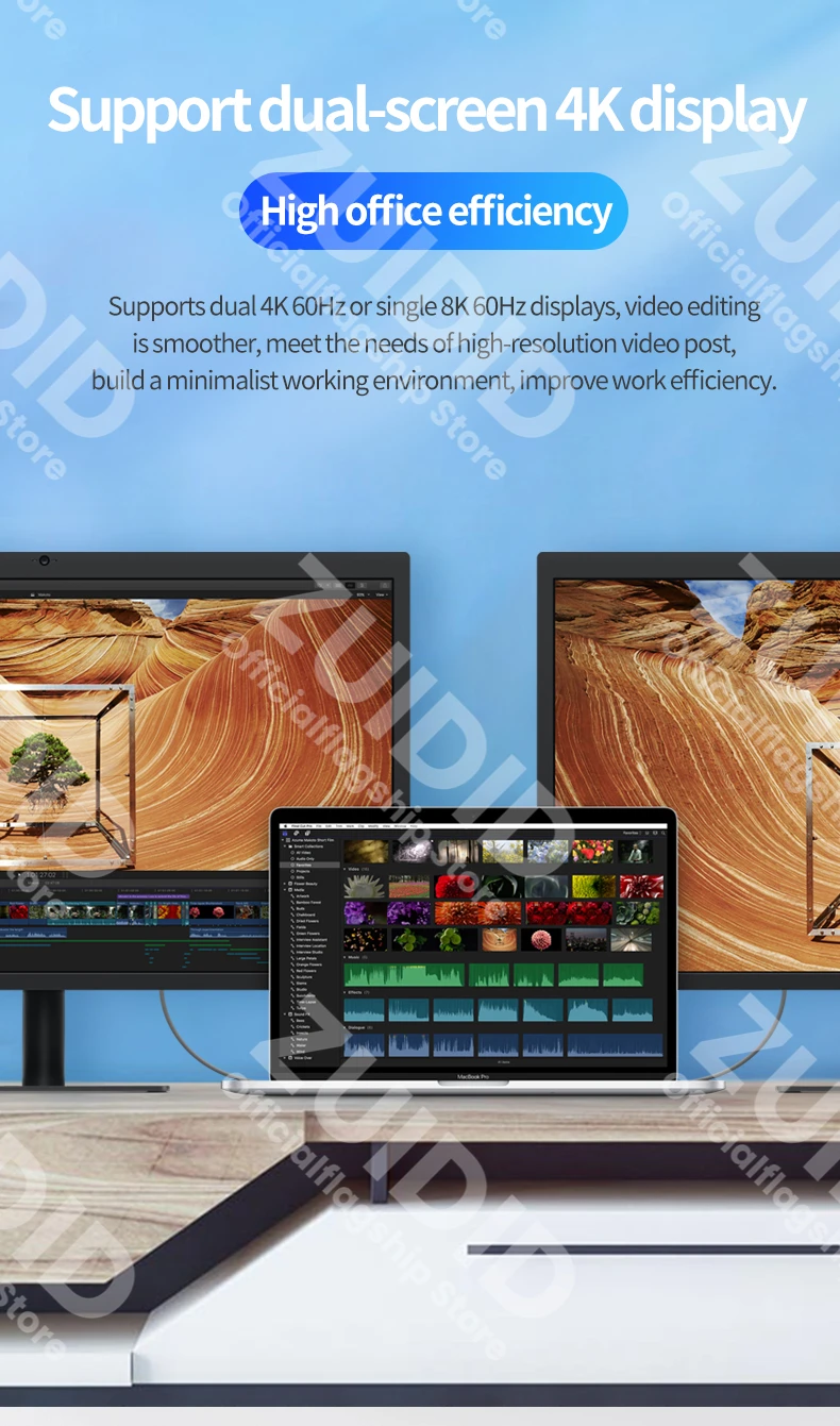 【Vídeo de alta definición】El cable de video ThunderBolt 4 admite salidas individuales 8K @ 60Hz o duales 4K @ 60Hz, puede disfrutar de una resolución de video ultra HD. Compatible con Steam Deck, conéctese a la Base, obtendrá una mejor calidad de imagen y experiencia de juego, y disfrutará del mundo del juego de alta calidad.