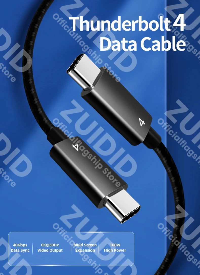 Comprar Cable Coaxial Thunderbolt 4/3 para MacBook, Cable de datos de carga rápida, 8K @ 60Hz, USB4, 40gbps, USB tipo C a tipo C, PD100W, USB-C