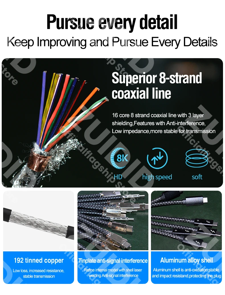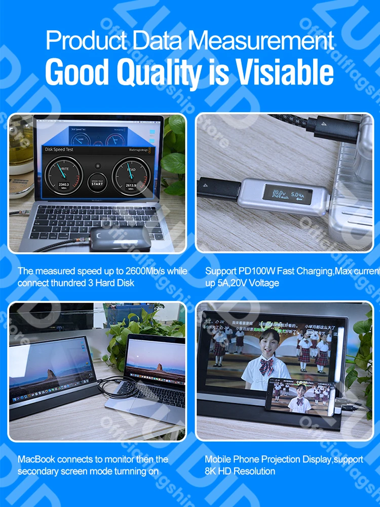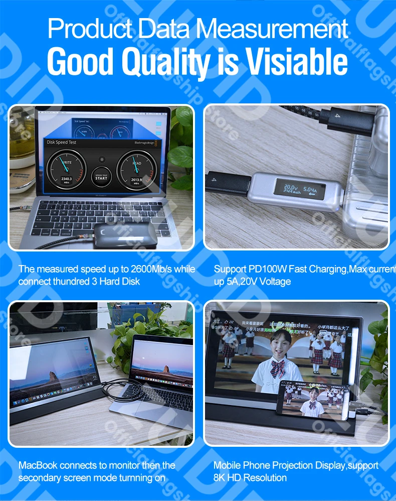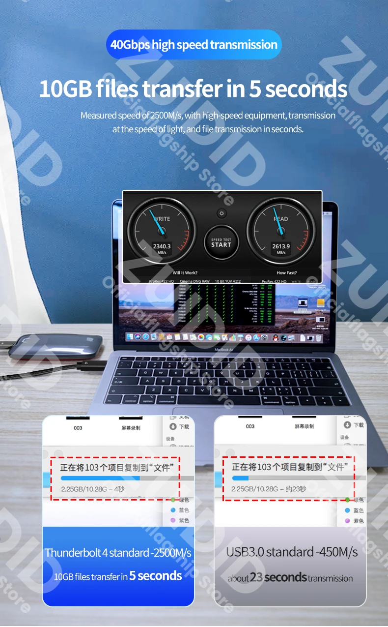 【 Velocidad de transmisión súper alta de 40Gbps 】El cable ThunderBolt 4 puede proporcionar una velocidad de transmisión de 40Gbps, lo que le permite transferir videos, películas, música e imágenes de alta definición en un segundo, lograr un intercambio de datos más rápido que los cables de 20/10/5Gbps.