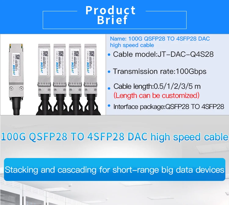 Comprar Cable de cobre Twinax de 100G QSFP28 a 4xSFP28 DAC, 0,5 M, 1M, 2M, 3M, 5M, conexión directa pasiva