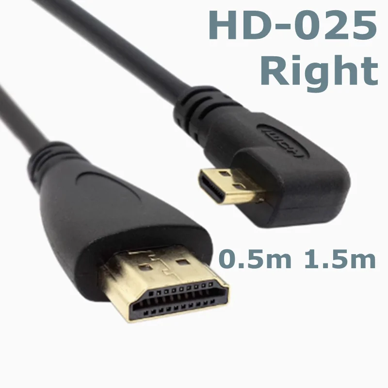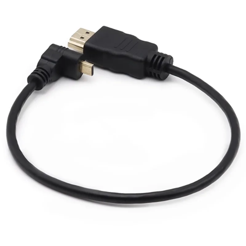 Cable Micro HDMI (tipo D) a HDMI (tipo A) con codo en ángulo 50 cm Chapado en oro 3D 4K 1080p MicroHDMI Audio para cámara de tableta Cable HDMI, admite 3D, UHD, ARC, Ethernet y todas las demás funciones HDMI disponibles. El cable HDMI chapado en oro admite varias resoluciones y es compatible con 480p, 720p, 1080i, 1080p, 2160p. Perfecto tanto para vídeo de alta definición como para fomatos de audio estándar. El cable HDMI de alta calidad utilizó cobre libre de oxígeno para hacer que el cable sea más suave y obtiene pruebas de enchufe disponibles más de 10000. Admite equipos: computadora portátil, cámara, tableta, Vidicon, MP4, monitor, proyector, TV y HDTV 3D.