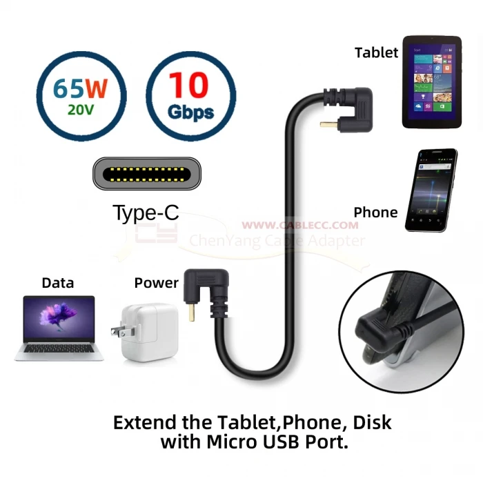 Comprar Cable de codo chapado en oro, USB 3,0 tipo C, macho a macho, Cable de vídeo de datos de alimentación de 10Gbps para NS Switch, teléfono y computadora portátil