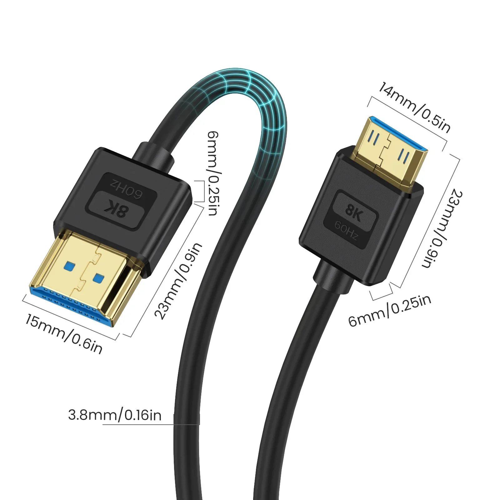 El cable HDMI de silicona duradero está hecho de material de silicona respetuoso con la piel, que tiene un tacto sorprendentemente suave, súper durabilidad y flexibilidad, y puede soportar más de 50000 pruebas de flexión.