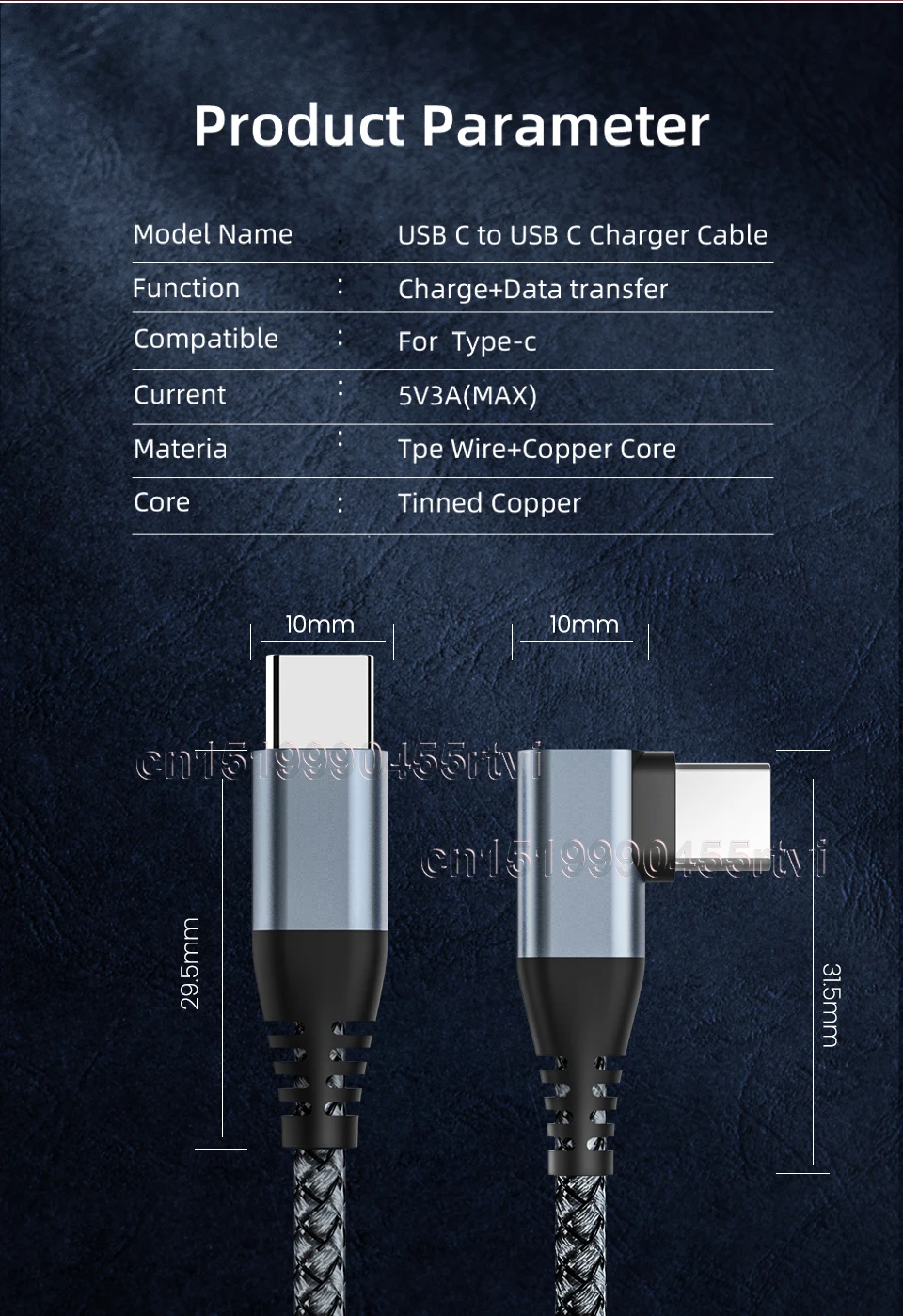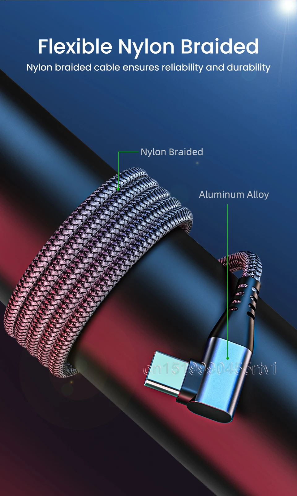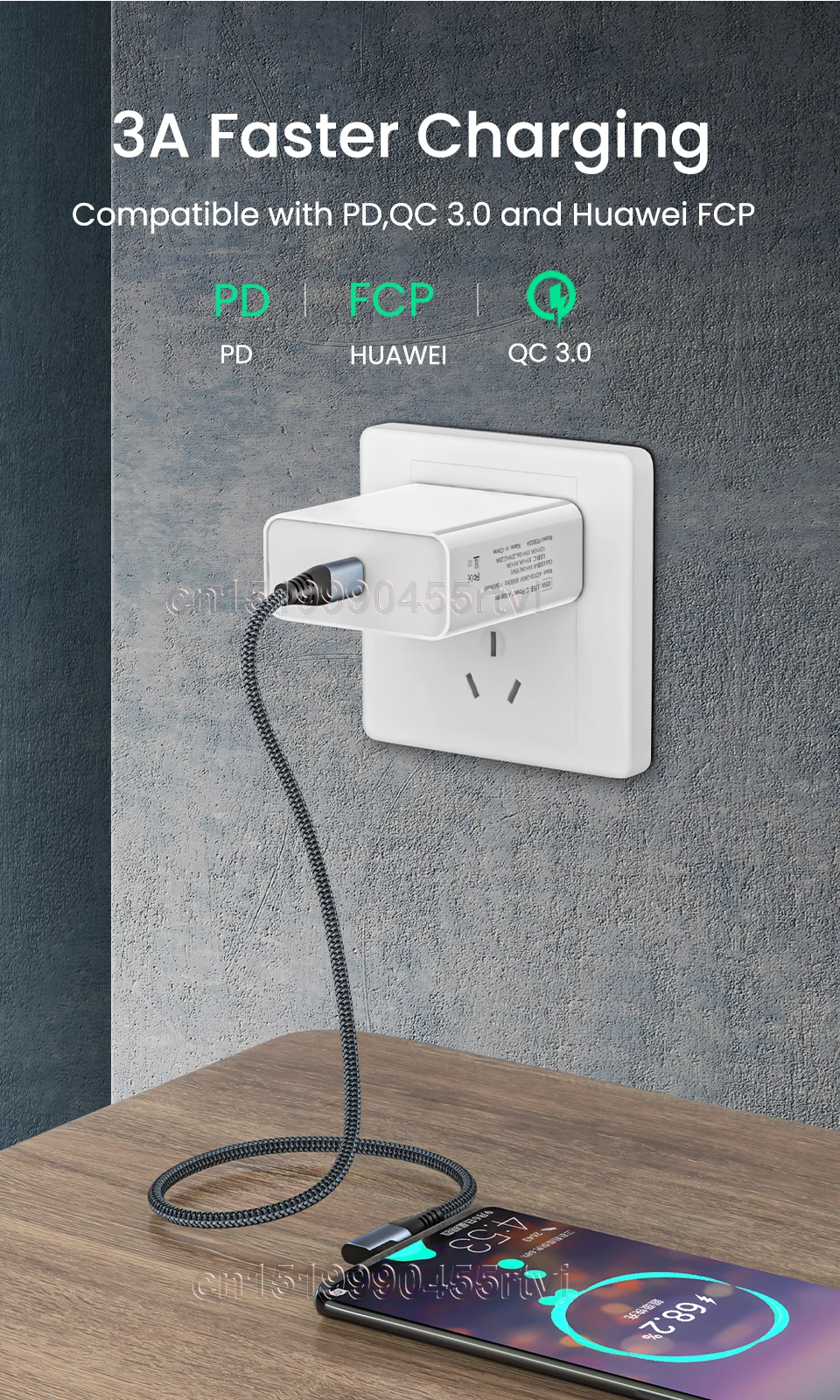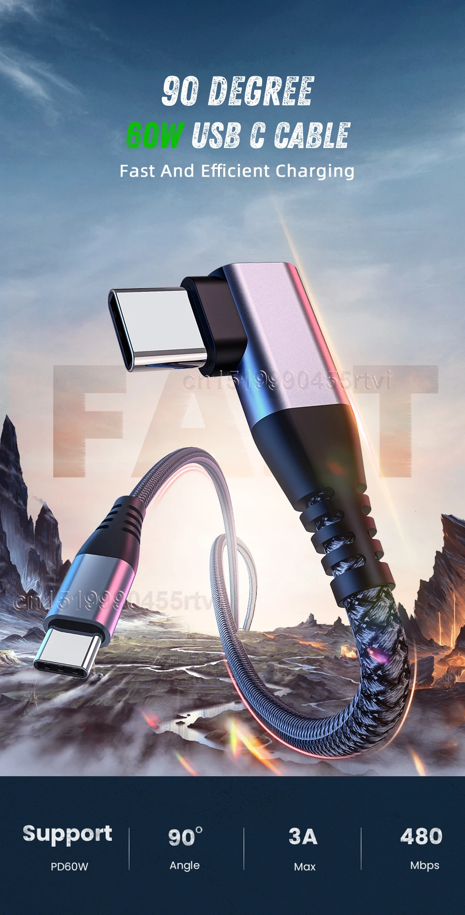 USB tipo C a tipo C Cable de codo 90 grados PD 60W cargador rápido teléfono móvil Cable de carga rápida para Huawei iPad Macbook Samsung