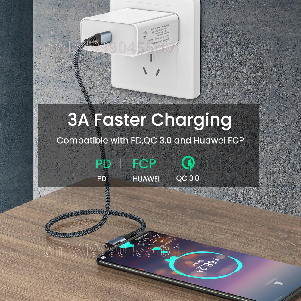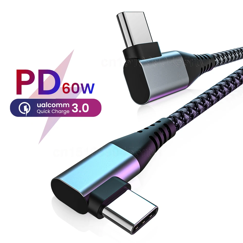 USB tipo C a tipo C Cable de codo 90 grados PD 60W cargador rápido teléfono móvil Cable de carga rápida para Huawei iPad Macbook Samsung