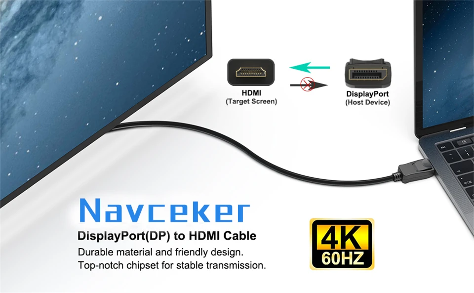 · EXCELENTE TRANSMISIÓN: Navceker 4K DisplayPort a HDMI El Cable de 6 pies utiliza una mejor solución de chip y un blindaje múltiple profesional para una transmisión de datos instantánea y precisa.