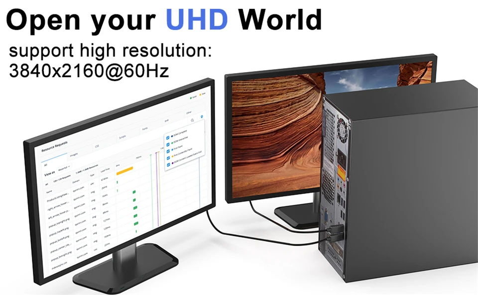 · Admite resoluciones de hasta3840x2160 a 60Hz,3840x2160 a 30Hz, 1080p Full HD, incluyendo 720p y 1600x1200 para monitores o proyectores HD.
