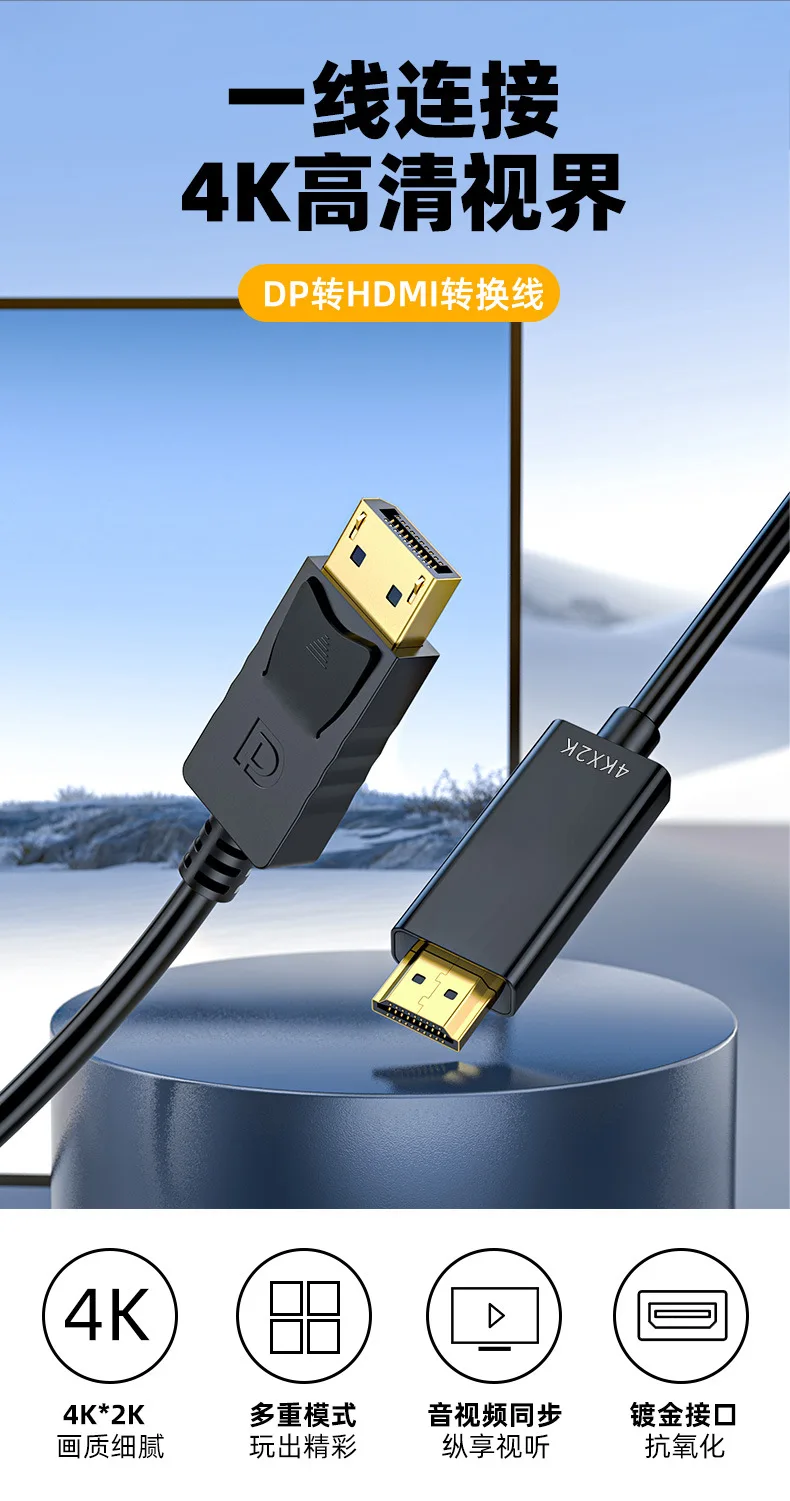 Comprar Cable compatible con DP a HDMI, 4K, 30Hz, DisplayPort a HDMI, puerto de visualización, Cable de Audio y vídeo para PC, proyector y portátil