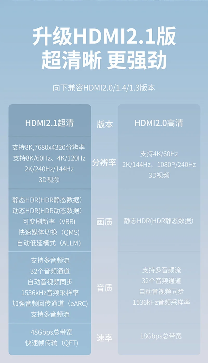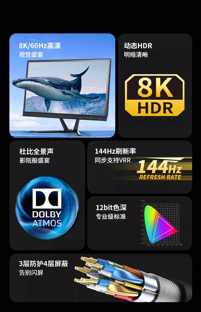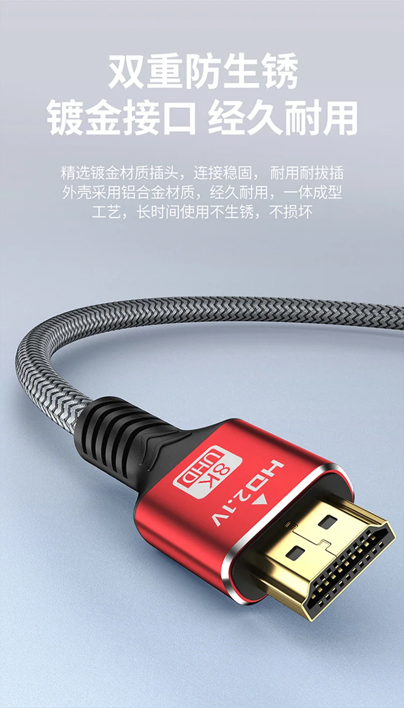 Cable compatible con HDMI de 48Gbps 8K 60Hz 50cm 1m 2m 3m 5m Cable 2,1 compatible con HDMI 4K 120Hz HDR Cable de vídeo con efecto 3D para PC HDTV