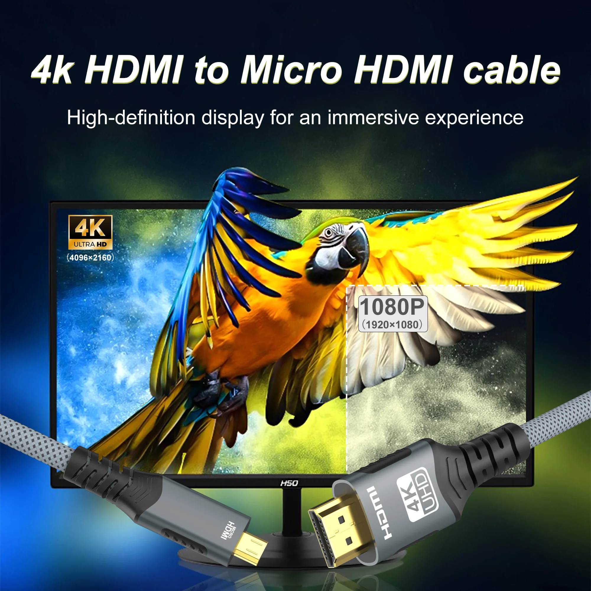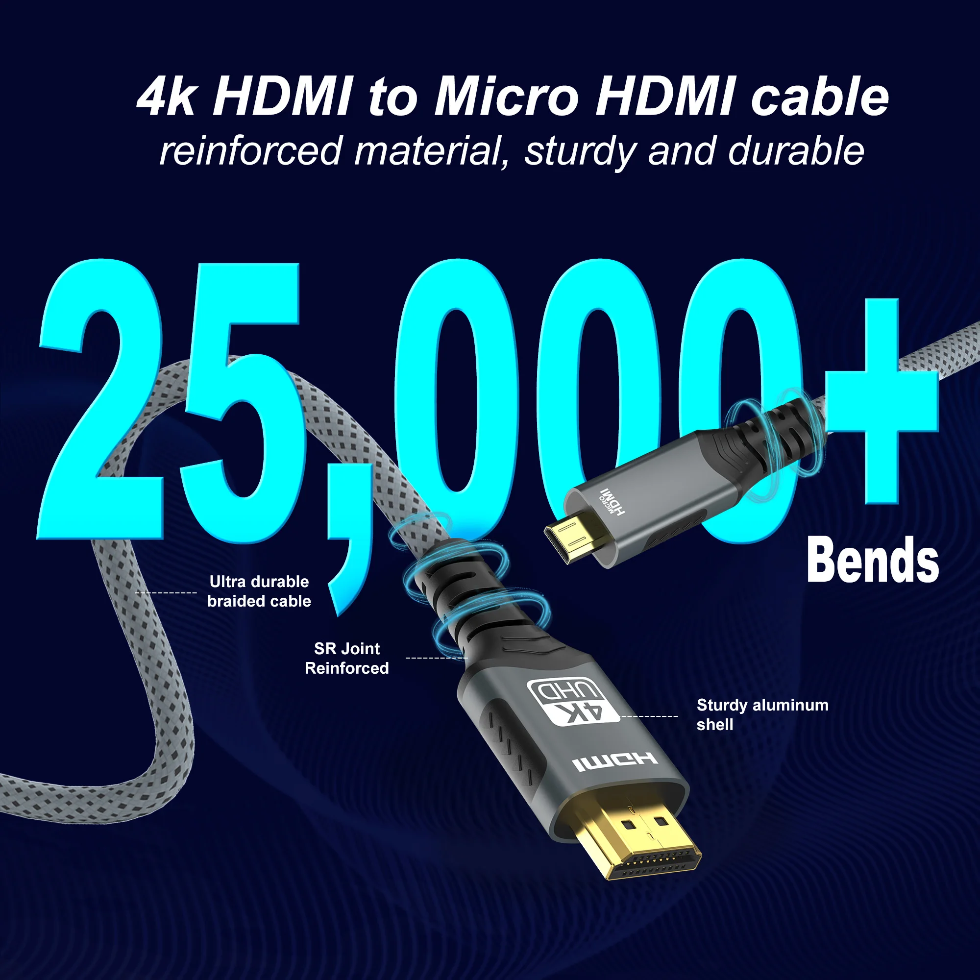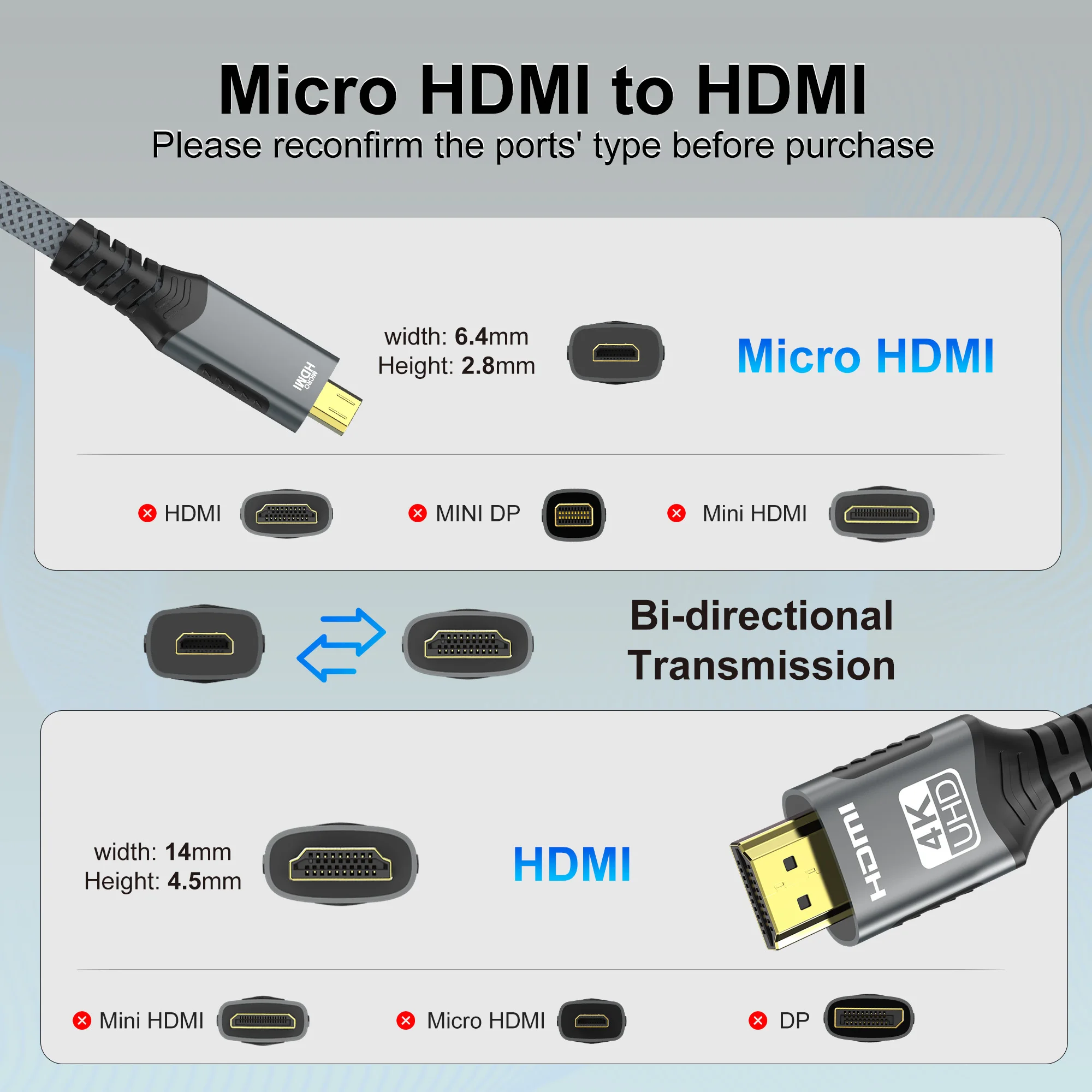 FDBRO Micro HDMI-Compatible a HDMI Cable 18Gbps 4K@60Hz Convertidor adaptador bidireccional trenzado para HDTV PS4 tableta cámara XBOX