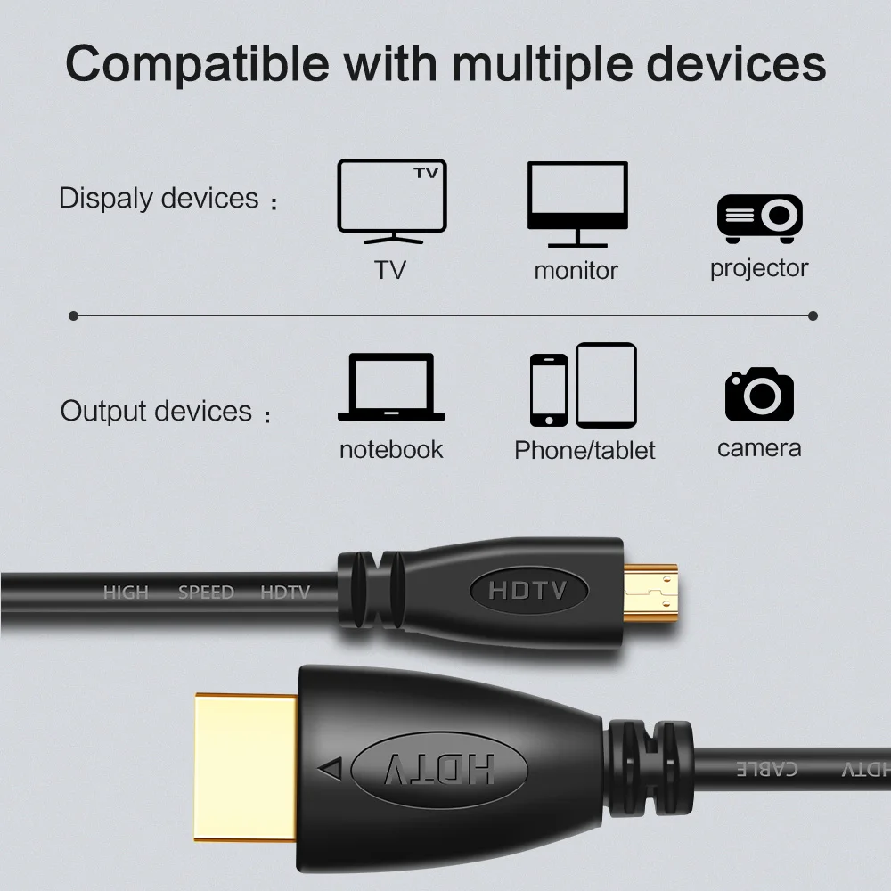 Comprar Cable compatible con Micro HD a HDMI, chapado en oro, 1m, 1,5 m, 1,8 m, 3m, 5m, adaptador de Cable Micro HD para TV, XBox, Tablet, cámara, tipo teléfono