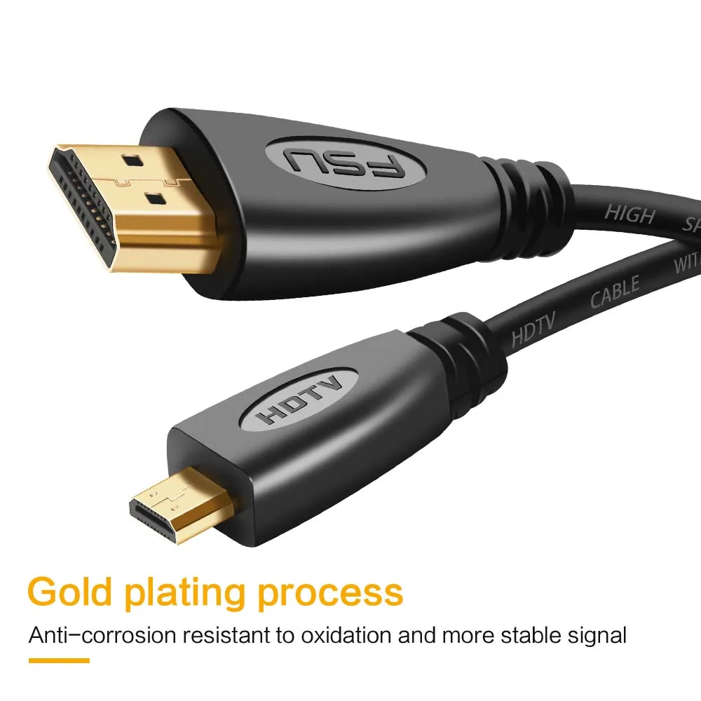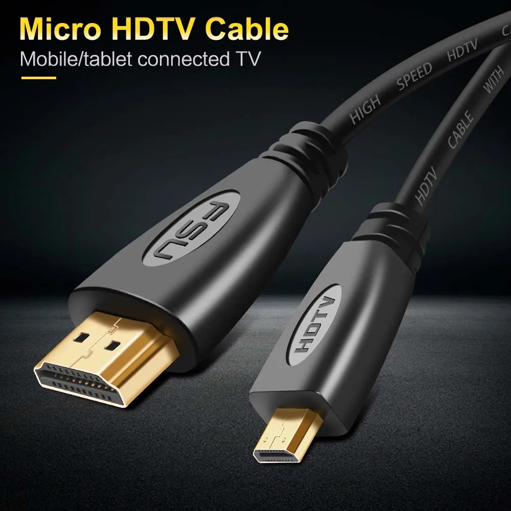 Cable compatible con Micro HD a HDMI, chapado en oro, 1m, 1,5 m, 1,8 m, 3m, 5m, adaptador de Cable Micro HD para TV, XBox, Tablet, cámara, tipo teléfono