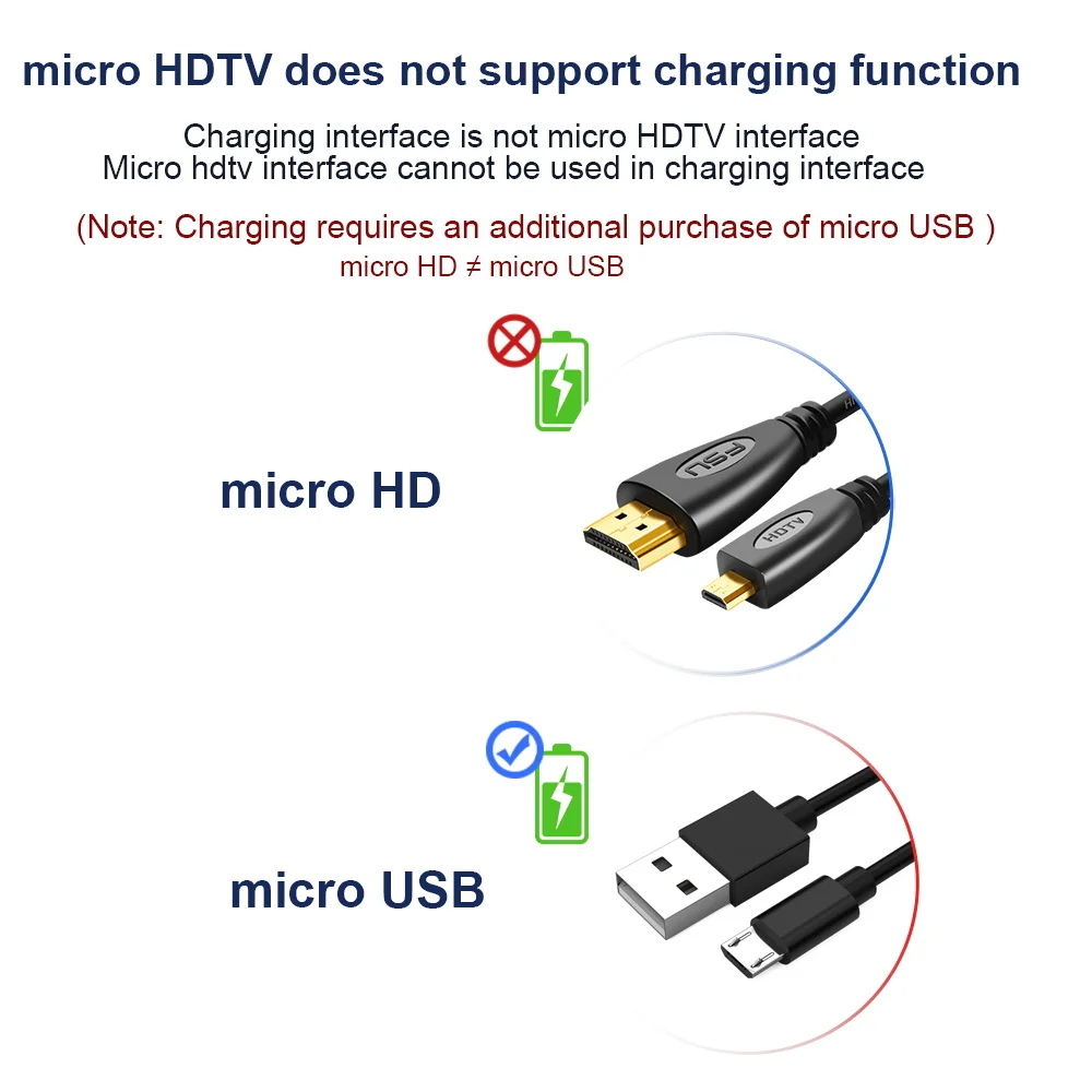Nota:Esta línea es un cable Micro HD a HD. No es un cable Micro USB.Tenga en cuenta que no puede cargar su teléfono Android.Antes de comprar, asegúrese de que su dispositivo esté equipado con un puerto compatible con micro HDMI.