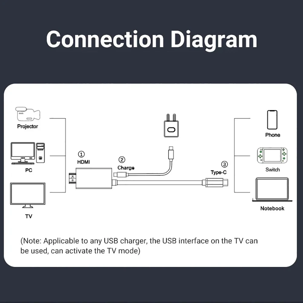Convertidor Compatible con tipo C a HDMI, fácil de usar, plug and play, sin necesidad de conexión WiFi, sin necesidad de punto de acceso/airplay personal, sin necesidad de ninguna aplicación/controlador.Permite una resolución de hasta 3840*2160@30Hz (4K 30Hz) y compatible con versiones anteriores de 480p,360p,720p,1080p.