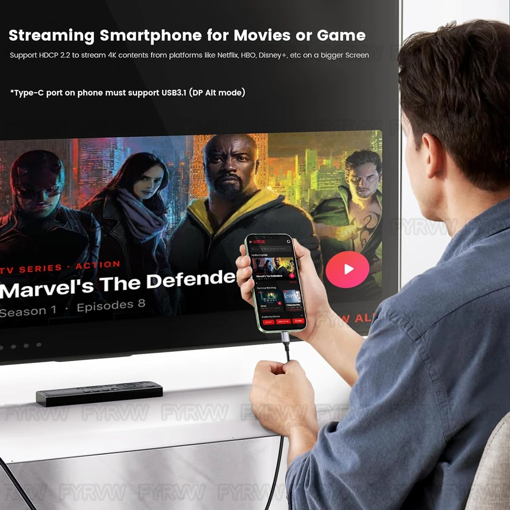 Excelente experiencia de visualización y juego FYRVW: este cable USB tipo C a HDTV admite una resolución de hasta 4K 3840x2160 60 Hz y también admite VRR, QFT, ALLM, EARC, ideal para juegos grandes y transmisión de video Ultra HD, traduciendo una jugabilidad más fluida y agradable.