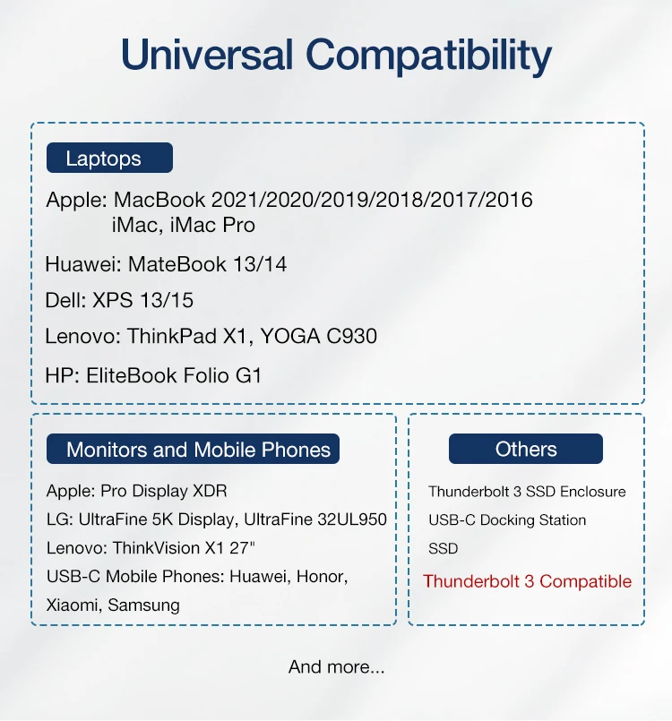 Amplia compatibilidad:Compatible con versiones anteriores de todo el protocolo USB (USB 3.2/3.1/3.0/2.0), también compatible con TB 3.