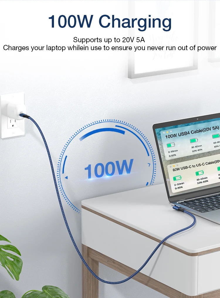 MOQ1 unidadPersonalizaciónODM/OEMPaqueteBolsa de plásticoPeso del artículo0,1 kgPruebas de calidadPrueba eléctrica e inspección visualLa garantía1 añoFunción del producto1. Carga rápida de 100 W:Carga el dispositivo USB-C a máxima velocidad.Utiliza un chip E-marker para entregar de forma segura hasta 100 W (20 V 5 A) de potencia.La velocidad de carga real también depende de los dispositivos y el cargador.