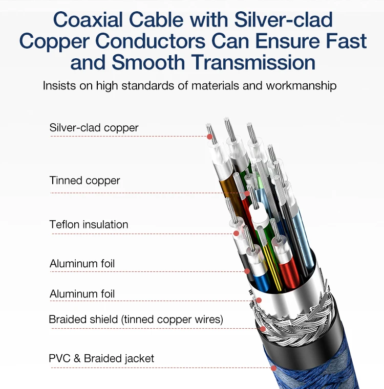 3.Construcción superior:combina conductores revestidos de plata y cobre estañadocon escudo múltiple para ofrecer alto rendimiento y durabilidad