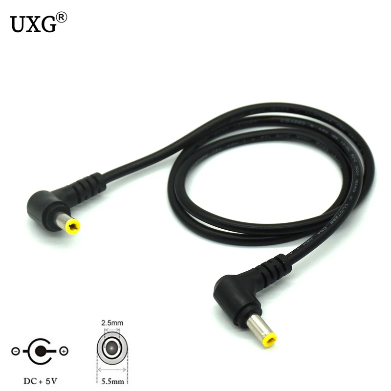 Comprar Cable conector adaptador de 90 grados en ángulo recto, enchufe de alimentación de CC de 5,5x2,1mm, 5,5x2,5mm a macho, Cable adaptador macho CCTV