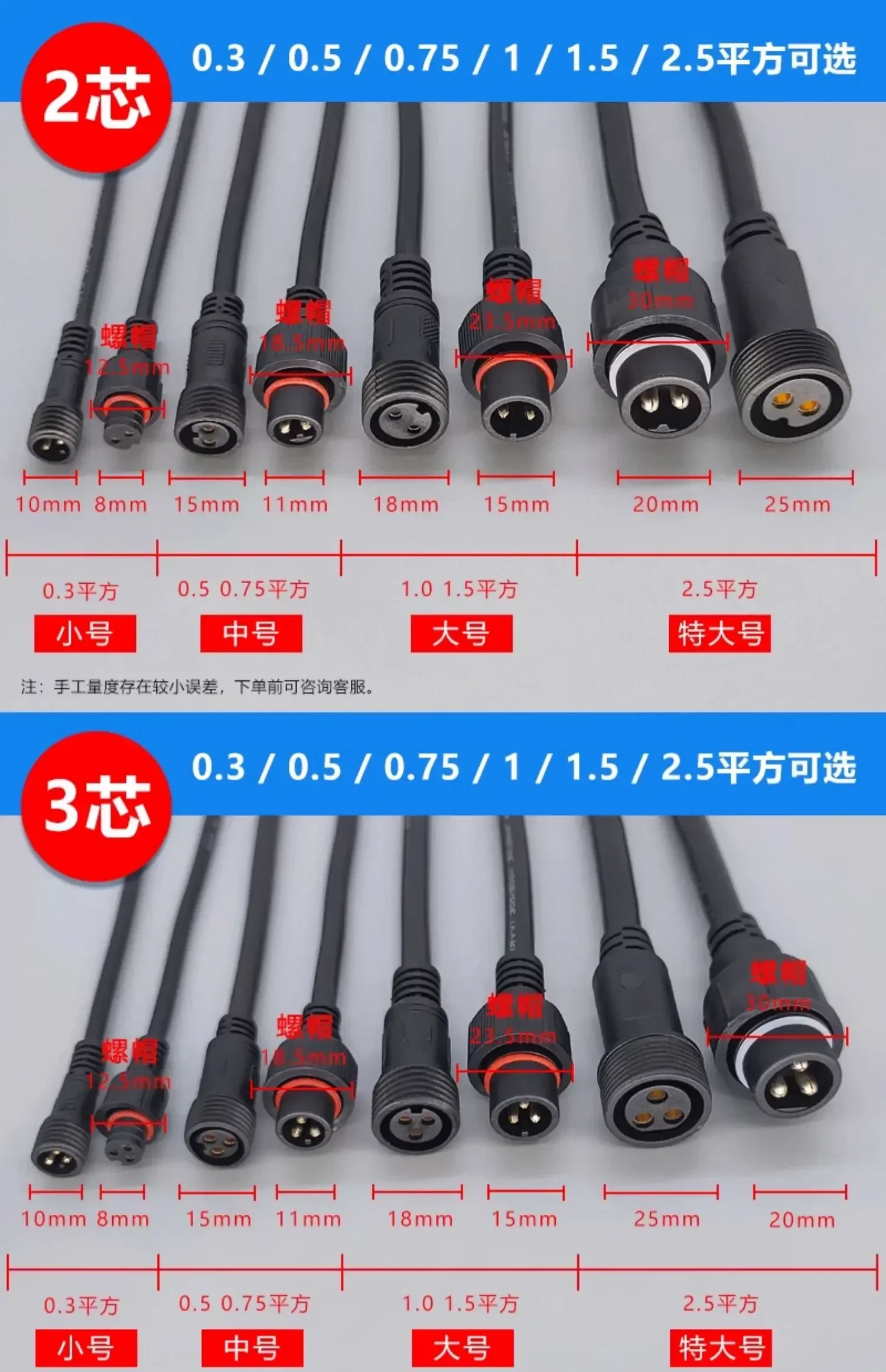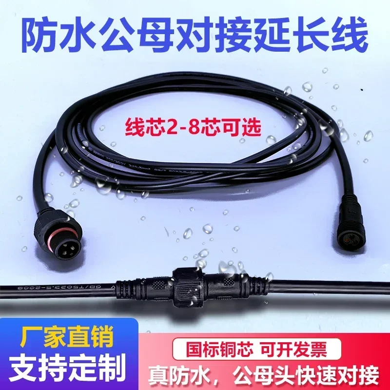 Línea de extensión macho hembra impermeable 2 3 4 6 7 8 pines IP67 Cable de enchufe de acoplamiento LED para exteriores Cable conector de alimentación cuadrado 0.3-2.5