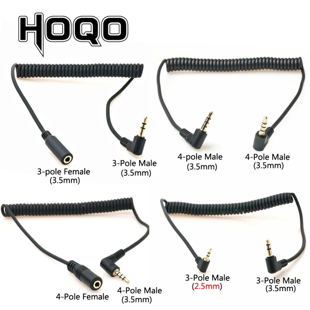 90 grados 3,5 mm 3/4 polos 3,5/2,5 mm trrs a TRS 3/4 polos macho a hembra a a auriculares estéreo Audio AUX resorte en espiral Cable