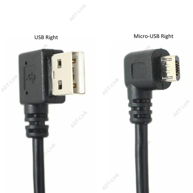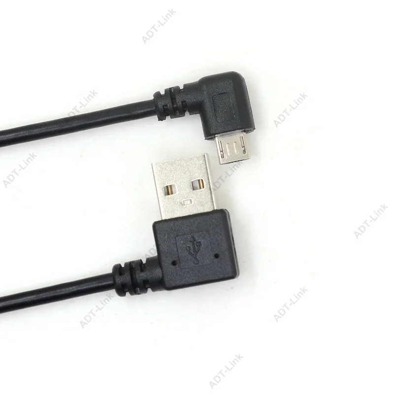 Comprar Cable conector de carga de datos, Conector Micro USB macho a USB macho de 90 grados, izquierda y derecha, 25cm para tableta