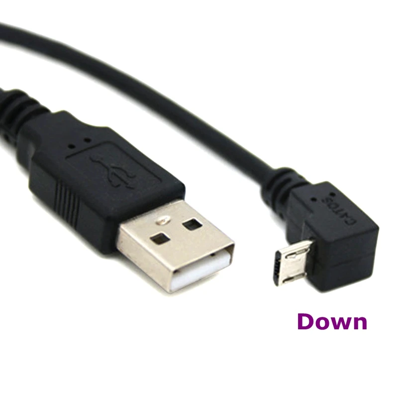Cable de carga de datos Micro USB macho a USB de 90 grados en ángulo izquierdo y derecho arriba y abajo para tabletaEl cable de datos Micro USB proporciona velocidades de transferencia de datos USB 2,0 de alta velocidad, mientras carga simultáneamente su dispositivo a través del puerto USB de su computadora.¡Este es un cable de datos USB original de fábrica hecho para su dispositivo, por lo que la transferencia de archivos es segura y fácil!Característica:Organice los archivos digitales (música, imágenes y contactos) en su ordenadorTransfiere archivos directamente a tu dispositivo usando este cable.Compatibilidad: Todas las tabletas Micro USB 2,0El Conector Micro USB tiene un ángulo de 90 grados