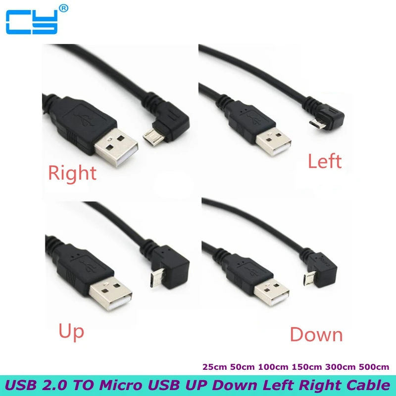 Comprar Cable conector de carga de datos USB 2,0 macho a Micro USB macho de 90 grados para teléfonos Android, tabletas, MP3, MP4 y carga de coche