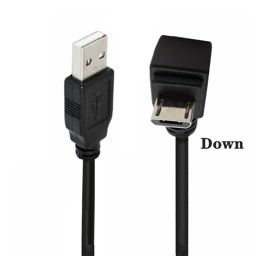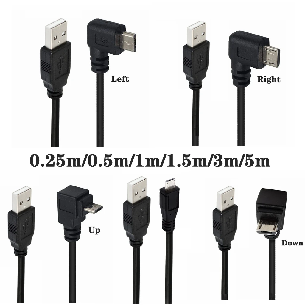 Comprar Cable conector de carga rápida de datos para tableta, Micro USB macho a USB macho, ángulo de 90 grados, arriba y abajo, izquierda y derecha, 25cm, 50cm, 1m