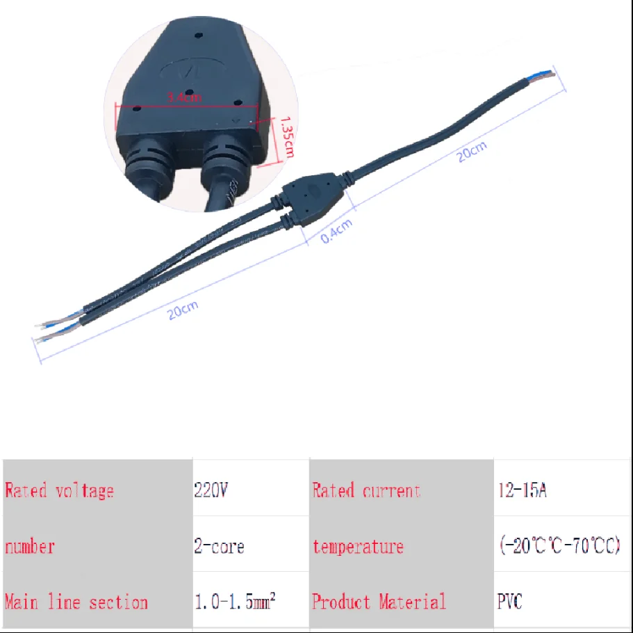 Cable conector impermeable tipo Y IP68, 2 pines, 3 pines, 4 pines, 5 pines, 6 pines, enchufe, lámpara exterior, divisor de Cable eléctrico