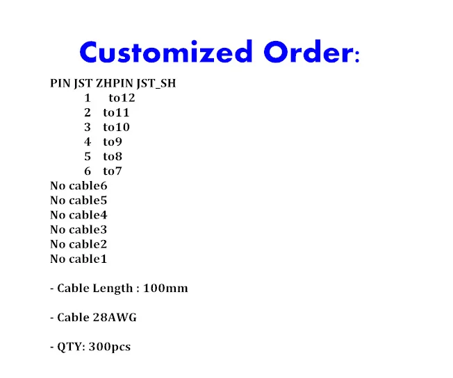 Comprar Cable conector JST 28awg, 100mm, 300 unids/lote
