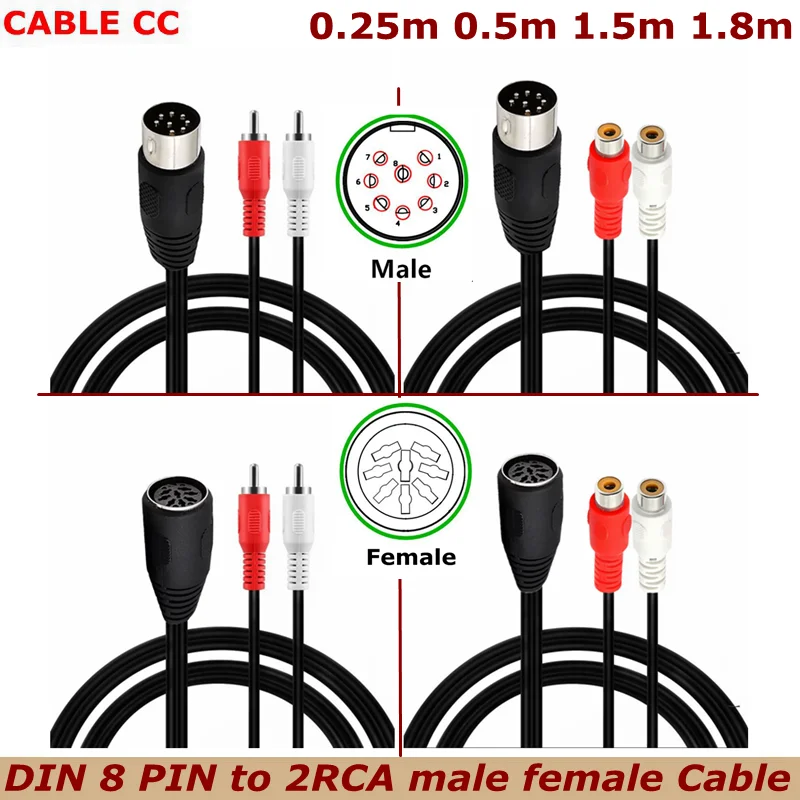 Comprar Cable conector Lotus Din de 8 pines a 2RCA, Adaptador de Audio macho y hembra, equipo de Audio, 50cm, 150cm