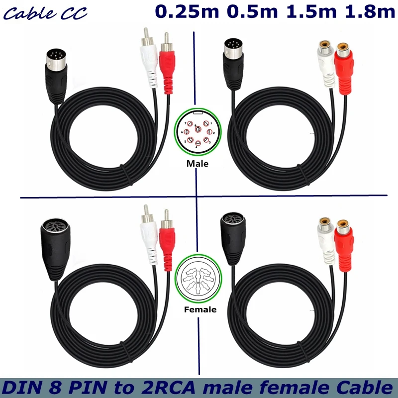 Comprar Cable conector Lotus Din de 8 pines a 2RCA, Adaptador de Audio macho y hembra, equipo de Audio, 0,5 m, 1,5 m