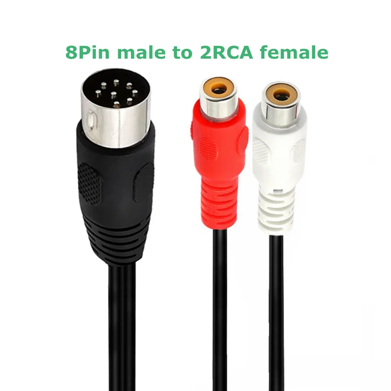 Cable para equipo de audio de instrumentos musicales; 8 núcleos DIN 8PIN hembra a 2RCA Lotus hembra cable adaptador de equipo de instrumento de audio antiguo 8 Pin Din 0,5 M/1,5 m; Equipo aplicable: equipo de audio de instrumentos musicales con equipo DIN 8Pin;