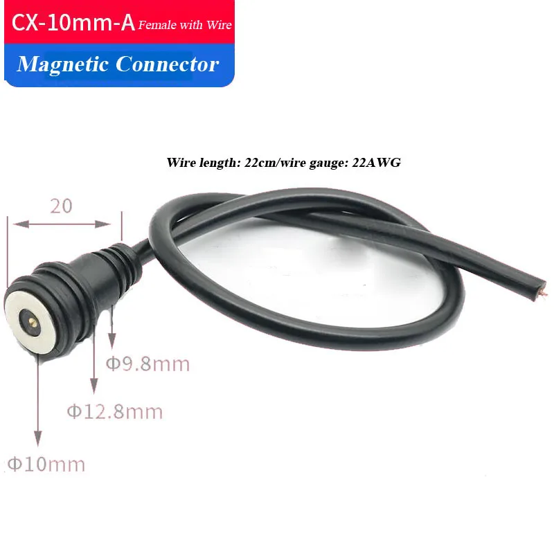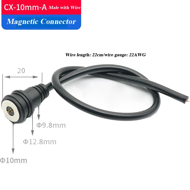 Cable conector magnético 2A resistente al agua, Terminal de 10mm, línea de carga de alimentación, conectores de adsorción automáticos circulares macho hembra