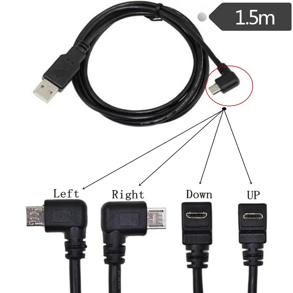 Comprar Cable conector USB Mini / Micro USB macho a USB macho, Cable de carga de datos 2A para tableta de 5 pies, 0,25 M, 1,5 M, abajo, izquierda, derecha, ángulo de 90 grados