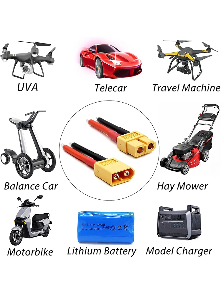 🧲【Acerca del cable XT60】 Longitud del cable de 12/14 AWG para 40 mm/1,5 pulgadas (no contiene el enchufe). Velocidad de hasta 55 A continua