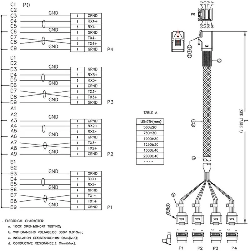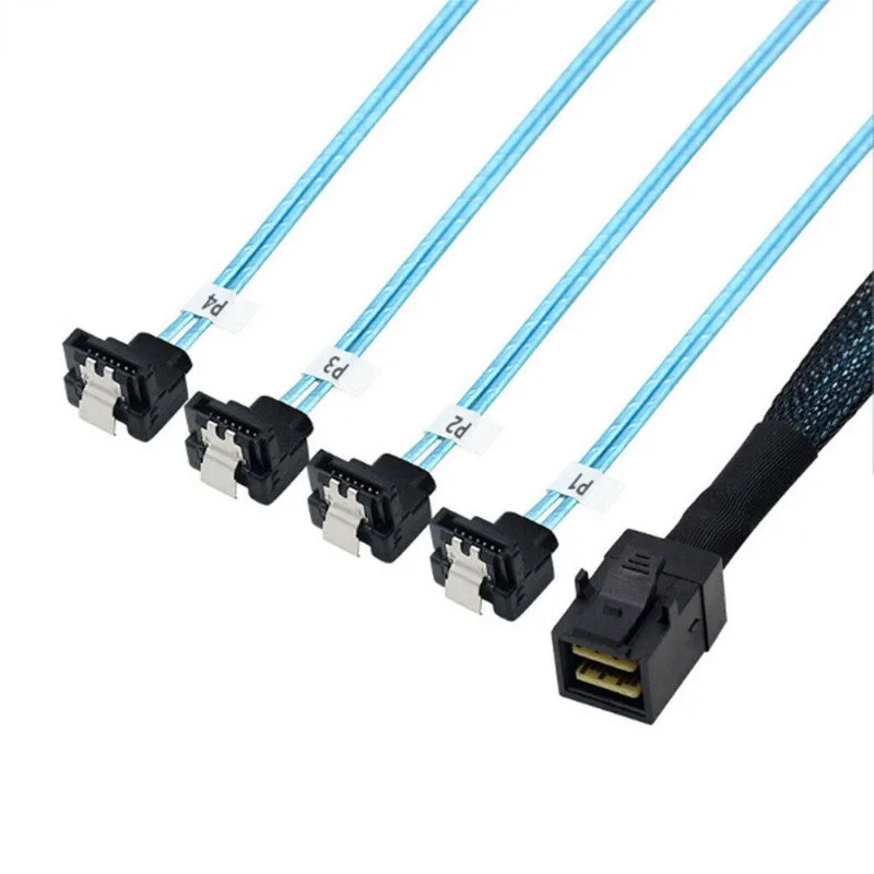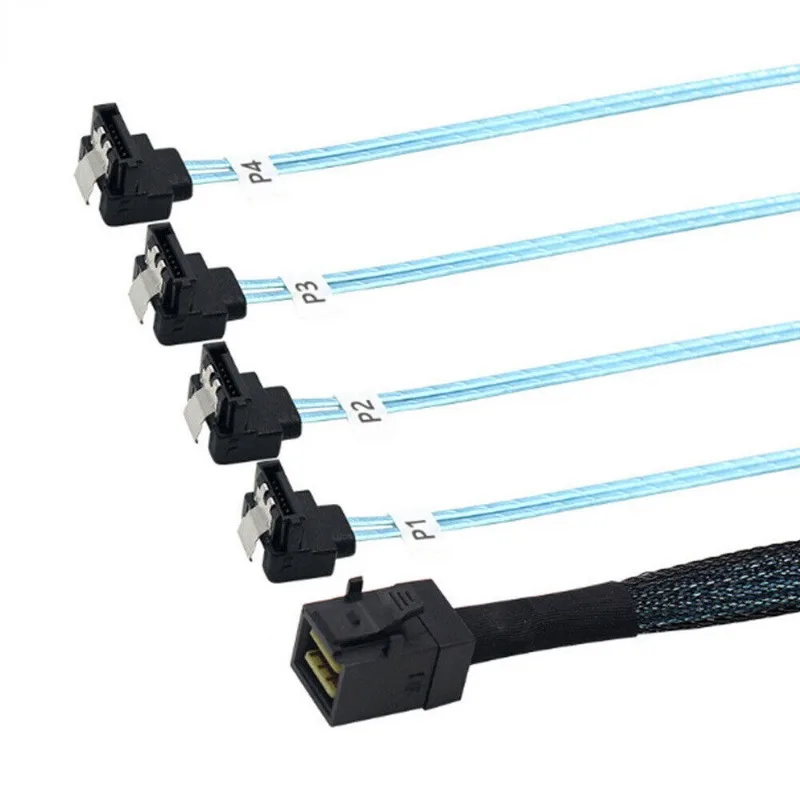 Comprar Cable de conexión de alta velocidad para servidor MINI SAS SFF-8643 a 4 puertos SATA de 90 grados