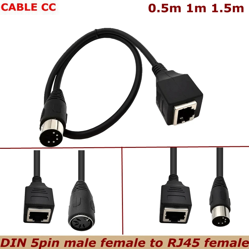 Comprar Cable de conexión de Audio de 0,5 m, 1m, 1,5 m, DIN grande, 5 pines, macho a hembra a RJ45 hembra, 8p8c, Cable adaptador MIDI a RJ45