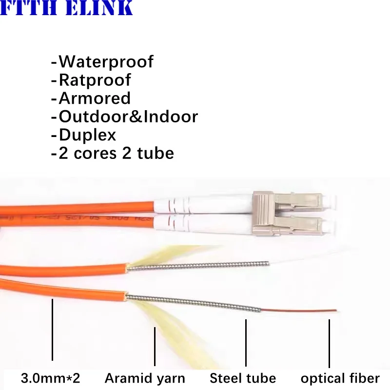 Comprar Cable de conexión blindado LC OM2 150m200m250m300m 2 núcleos SC FC ST tubo dual multimodo puente de fibra óptica de doble núcleo de 3mm a prueba de LSZH