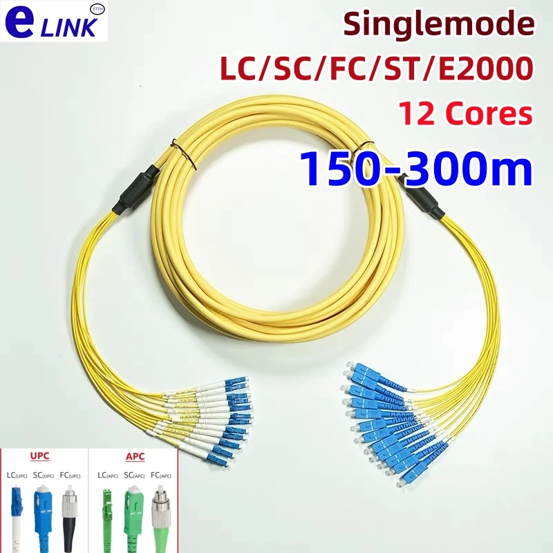 Comprar Cable de conexión de fibra 12 núcleos LC-LC 150-300m monomodo 200m250m puente incluido SC FC ST E2000 SM cable de parche de fibra óptica paquete 12C