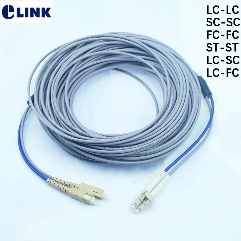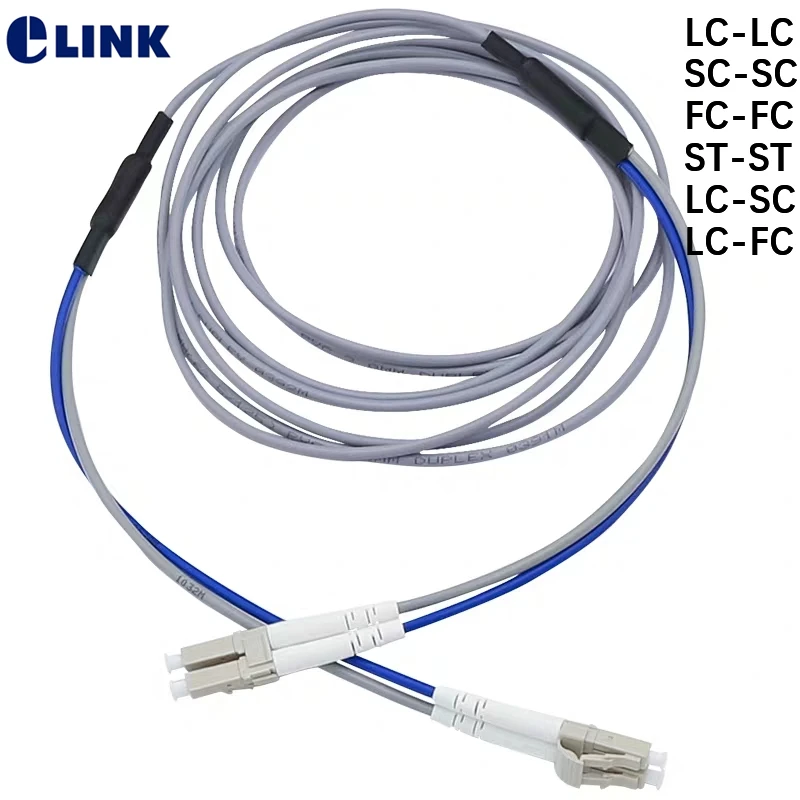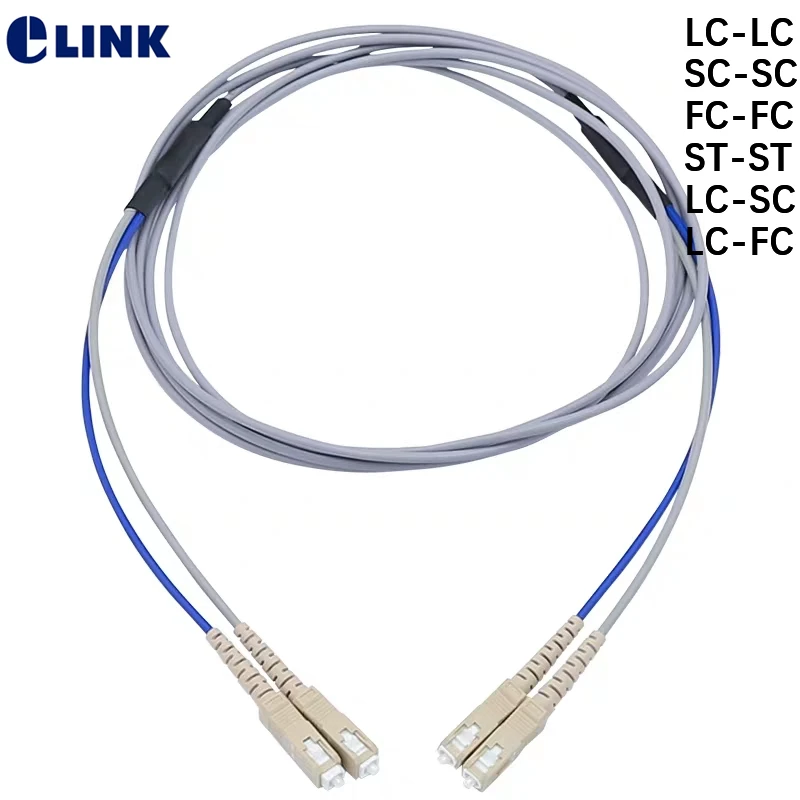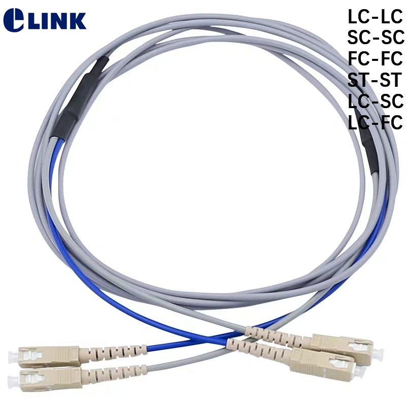 Parches de fibra blindados de 2 núcleos SC LC FC ST APC Multimodo 2 fibras Puente de fibra óptica blindado Cable MM Cable dúplex ELINK 50/125um om2