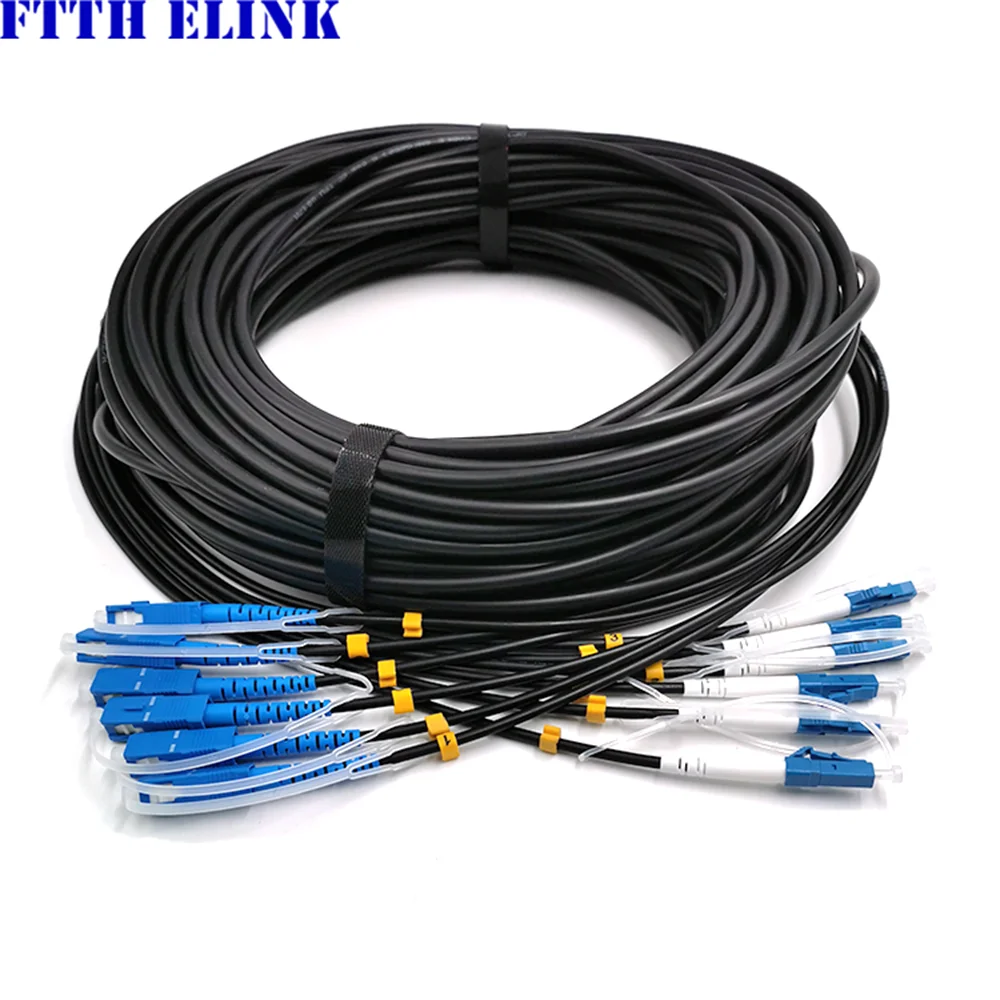 60M-120M Cable de conexión de fibra blindada de 6 núcleos 6C SC LC FC ST APC cable de puente óptico monomodo a prueba de ratones de 6 fibras ELINK ftth 100M 80m TPU negro LSZH