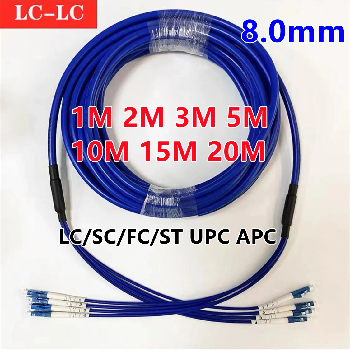 1m2m3m5m10m15m20m 4 núcleos 8.0mm Cable de conexión de fibra blindada 4C SC LC FC ST APC monomodo 4 fibras puente de fibra óptica al aire libre
